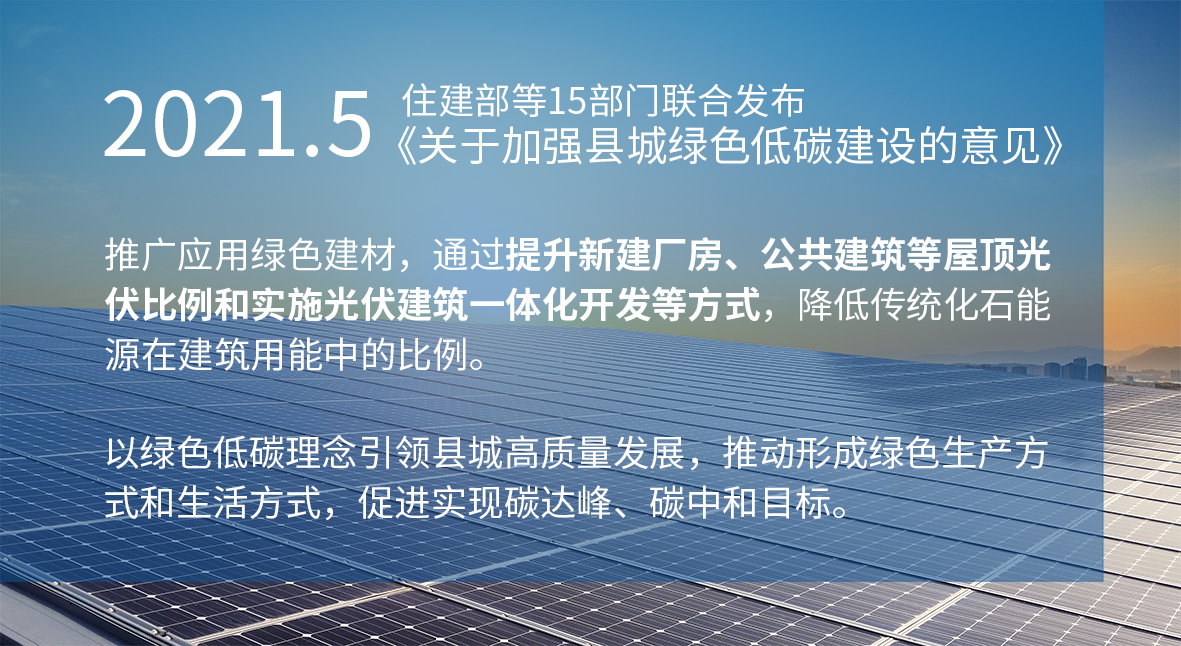 光伏建築一體化(BIPV)——綠色(sè)建(jiàn)築未來發展方向。 “碳達(dá)峰、碳中和”目標(biāo)提出後各行業掀起了綠色發展的熱潮。而在一係列綠色概念中,光伏建築一體(tǐ)化(BIPV)成為橫(héng)跨光伏、建築兩大行業(yè)的熱門概念(niàn)。 光(guāng)伏建築一體化(BIPV):光伏組件作為建築構件,將太陽能光伏產品集(jí)成到建築上(shàng),與建築物同時設計、同時施工、同時安裝,並與建築物(wù)完(wán)美結合的太陽(yáng)能光伏發電係(xì)統(tǒng)。簡單來說,建築光伏(fú)一(yī)體的本質就是能發電的建材(cái)產品。除(chú)了有非常好的發電能力,還(hái)要具有替代傳(chuán)統屋頂(dǐng)的遮陽、保溫、防水的功能或者建築美觀功能。 我國(guó)為實現雙碳目標,在(zài)2022年4月1日,住建部(bù)國家標準《建築節(jiē)能與可再生能源利用通用規範》正式實施:新增建築將必須同步配套設計建(jiàn)設太陽能係統、強製碳(tàn)排放計算。 分布式光伏好處多 降溫防水又隔熱 01 利用閑置屋頂,盤活固定資產增加收益(yì),具有投資效(xiào)益。 02 節省峰值電費,餘電部分上網(wǎng)出售。 03 降低工廠內部溫度,增加工作舒適性和夏天降溫(wēn)的成本。 04 太陽能發電係(xì)統建(jiàn)設周期短,可根據企業用電負荷大(dà)小,建設合適的太陽能方陣,避免浪(làng)費,可穩定運行25年以上,有效增(zēng)強企業競爭(zhēng)力。 05 不受資源分布地域的限製(zhì),充分利用建築屋麵,安全(quán)可靠,無噪聲,無(wú)汙染。 06 發電過程中(zhōng)不產生汙染廢(fèi)棄物,是理想的清(qīng)潔(jié)能源,輕(qīng)鬆完成節能減排指標。 天豐光伏(fú)建築一體化屋麵係統 聚焦工商業屋麵(miàn)發電需求 天豐光伏建築一體(tǐ)化屋麵係統——昱板係統是針(zhēn)對建築物屋(wū)麵光伏(fú)發電設計的屋麵板產品,該產品可輕鬆(sōng)實現屋麵板與太陽能麵板的無縫結合,達到(dào)建築節能與建築清潔能源的高效集成。 昱板特點: 技術行業(yè)領先 應用(yòng)成效突出 節能低碳建築(zhù)是未來建築的發展方向,光伏建築一體化將成為節能低碳(tàn)建築(zhù)的標配。天豐光伏建築(zhù)一體化屋麵(miàn)係統,打造可以發電的屋頂陽光銀行,托起光伏發電的(de)美(měi)好明天。